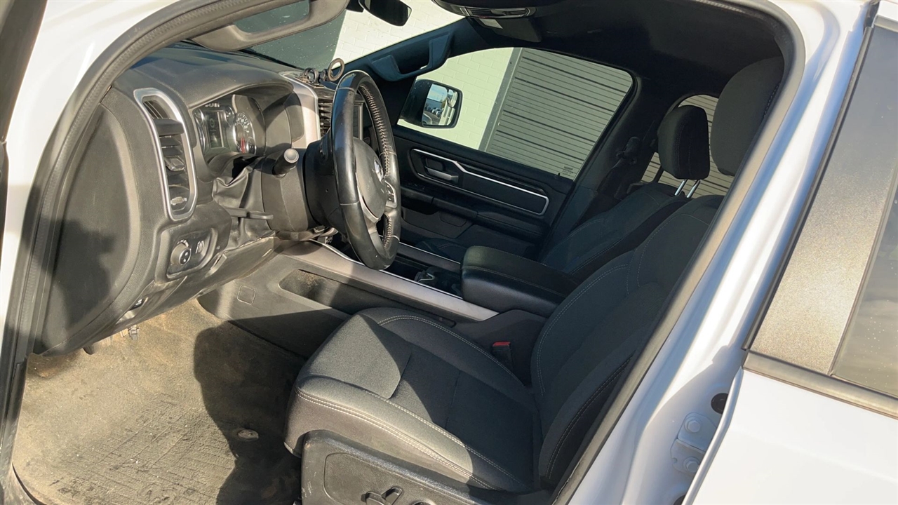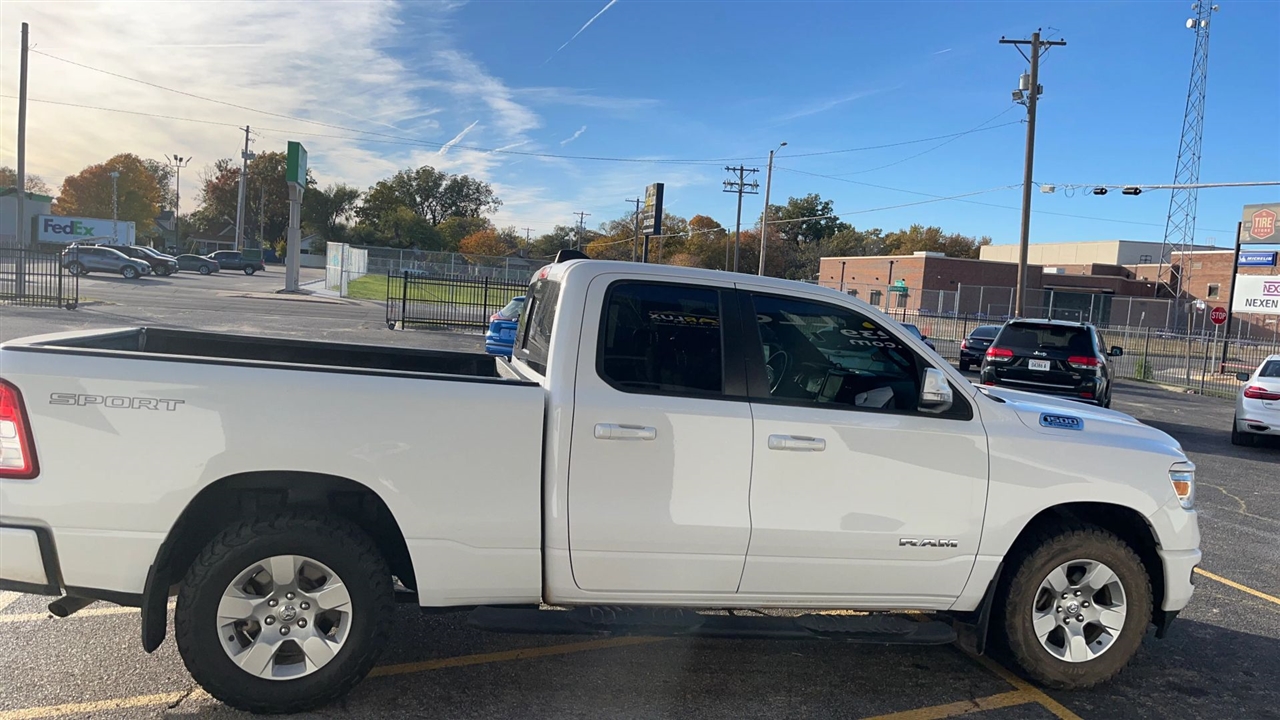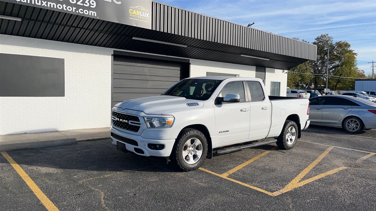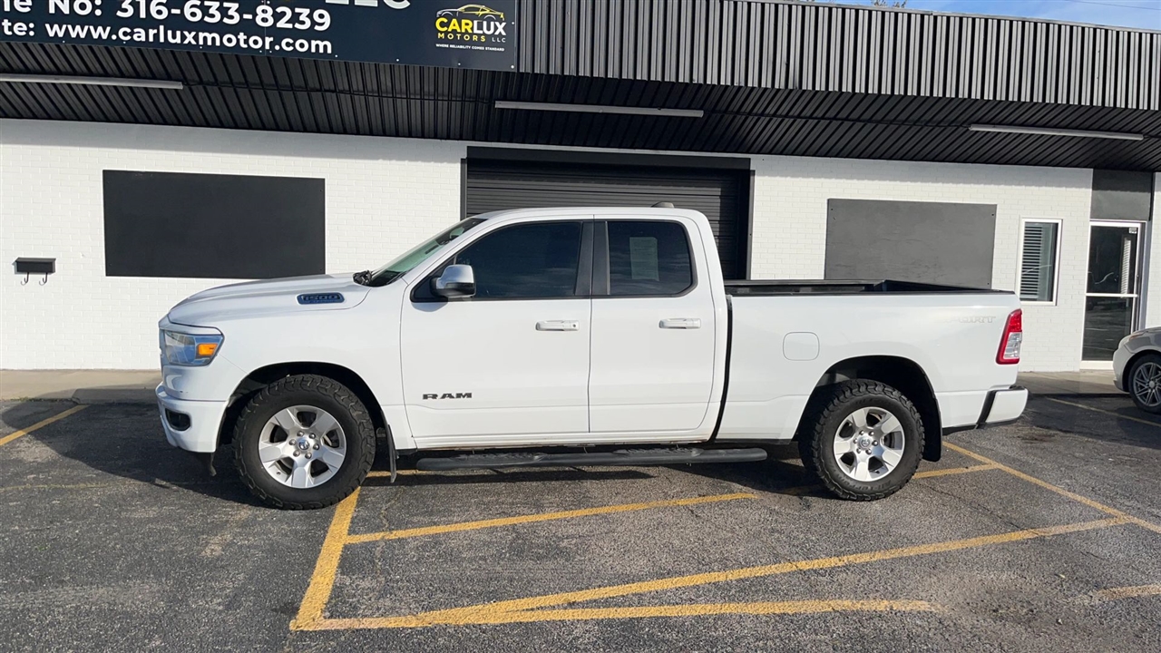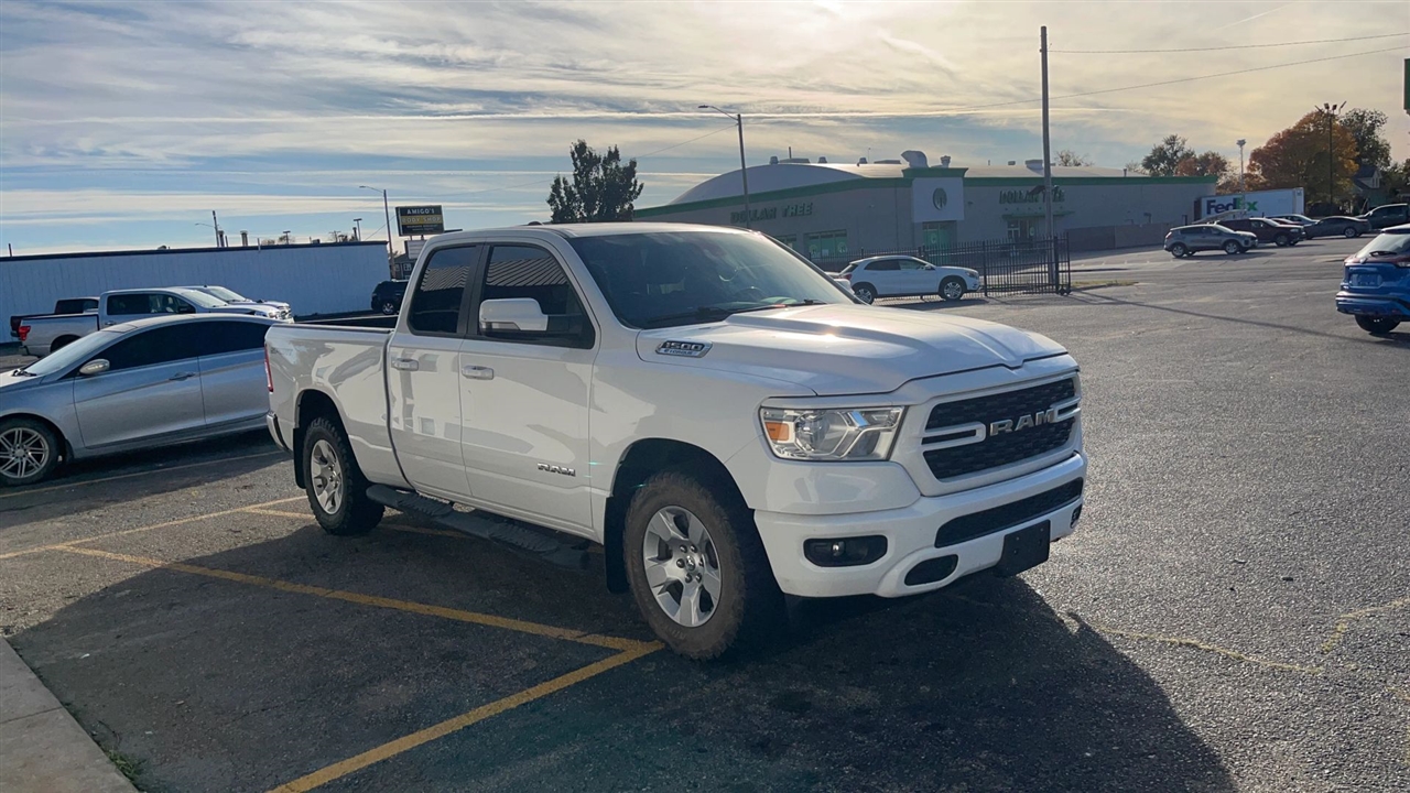 Presenting the 2023 Ram 1500 Quad Cab Big Horn Pickup, an embodiment of enduring strength and refined utility. This distinguished vehicle offers a harmonious blend of style and capability, ideally suited for both professional and personal endeavors. The immaculate white exterior accentuates its commanding presence, while the advanced engineering ensures a smooth and responsive driving experience. With its spacious four-door configuration, this pickup provides ample room for passengers and cargo alike, making it a prudent choice for those who value reliability and versatility in their transportation.