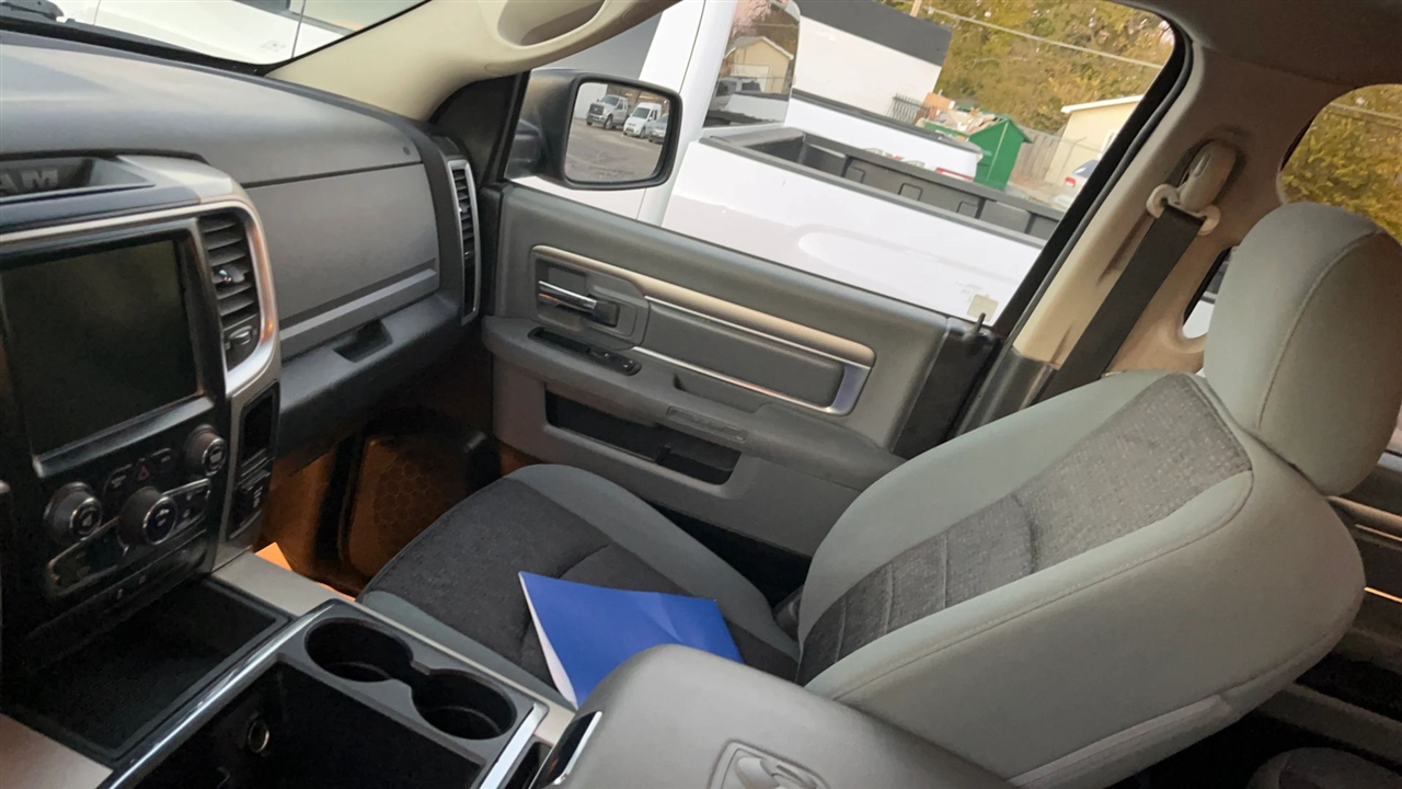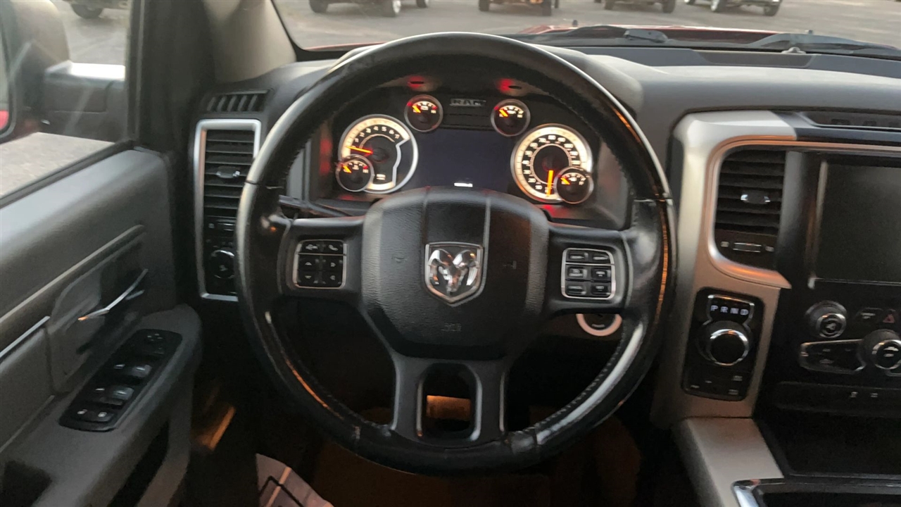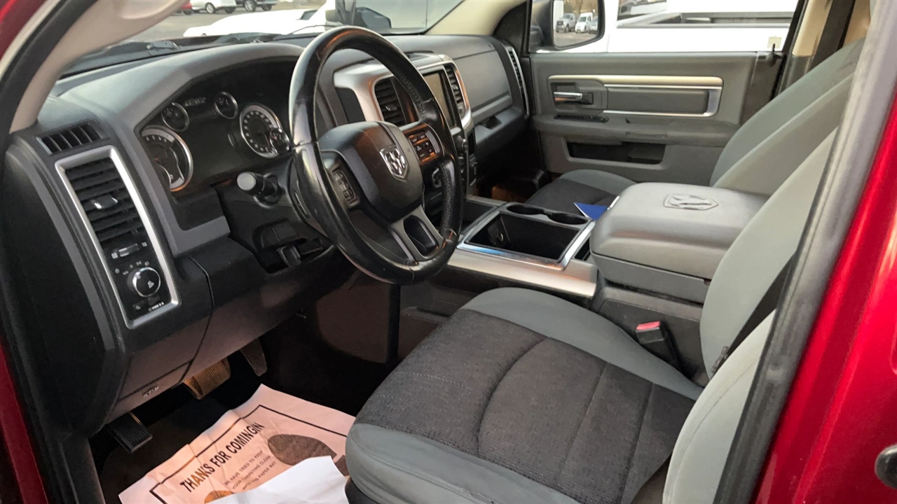 The 2015 Ram 1500 Crew Cab Lone Star Pickup 4D 5 1/2 ft offers a striking presence with its bold red exterior and robust design. Distinguished by its automatic eight-speed transmission and powerful eight-cylinder engine, this pickup is engineered to deliver consistent performance and reliability. The spacious four-door configuration ensures ample room for passengers and cargo, making it a practical choice for both professional and personal use.