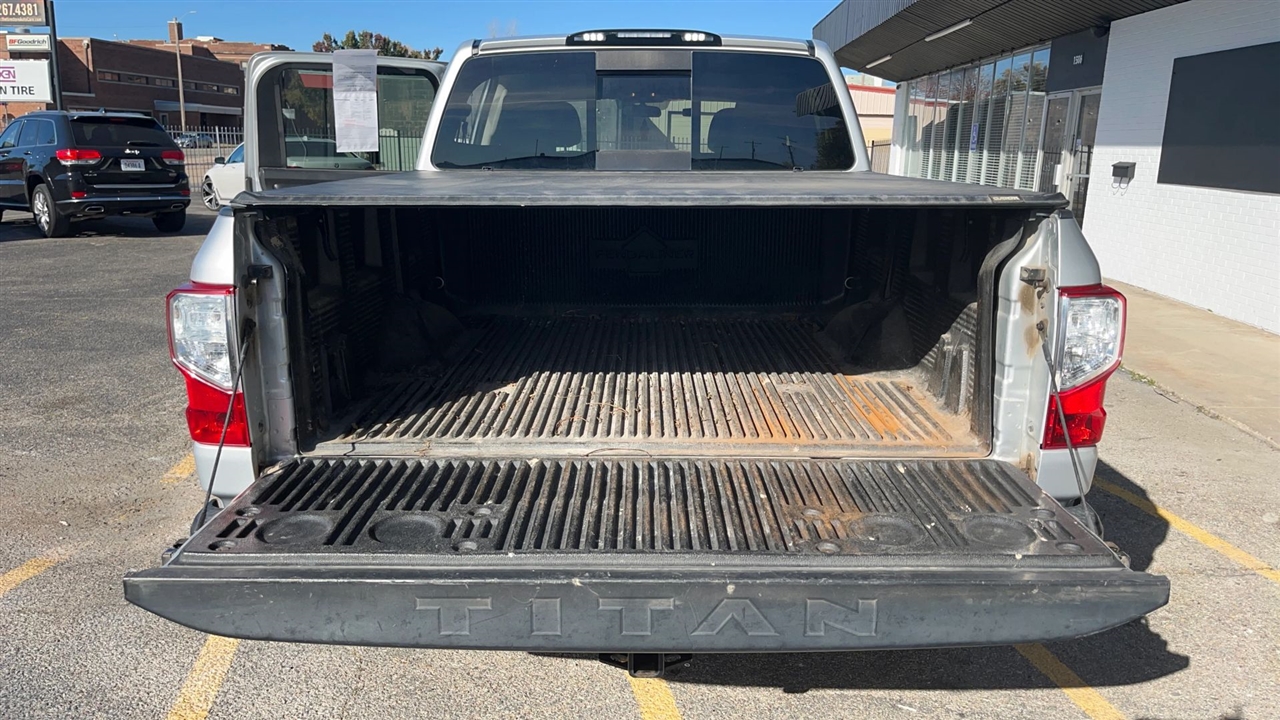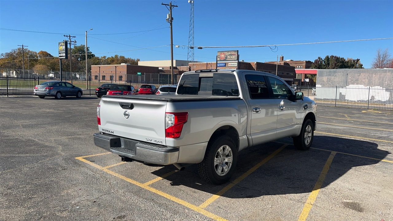Presenting the 2017 Nissan Titan Crew Cab SV Pickup, a vehicle that exemplifies practicality and robust design. Its striking silver exterior accentuates a commanding presence, while the spacious four-door configuration offers functionality for both professional and personal endeavors. This model is engineered to deliver consistent performance through its automatic seven-speed transmission and eight-cylinder engine, ensuring reliability on every journey. The Nissan Titan stands as an ideal choice for those who demand versatility and enduring value in a pickup.